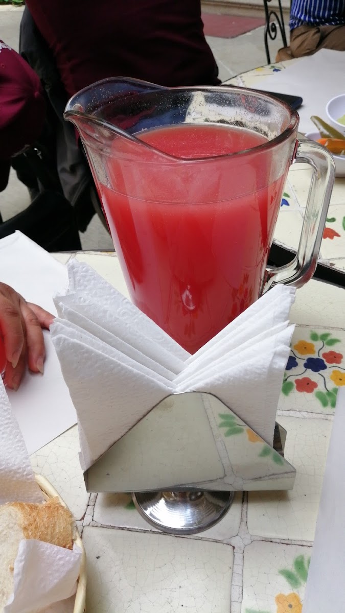 I’m giving them a 5 for the menu del Día. I haven’t eaten off their regular menu. My husband and I stopped by to give their Comida a try and were blown away by the excellent service, the quality and tastiness of the food, and the cleanliness and comfort of the restaurant itself. (Comfortable chairs and even cloth napkins!) The price was a most reasonable $100 pesos for a 4 course meal and drink. The menu the day we were there included absolutely delicious mushroom soup, or a crisp salad with squash, red pepper, corn, and olives; a veggie tostada; pork ribs that were meaty and tender and had a delicious sauce (a bit spicy but not too); and a delicious light cheese cake. The bread was served with real herbed butter. The waiters kept refilling the agua fresca, and served each course with little delay. We were totally delighted and will definitely return.